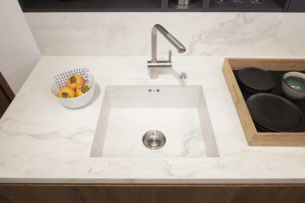 Quarzsteinoberflächen sind in verschiedensten Dekoren erhältlich und äußerst robust, da so gut wie porenfrei. Zum Reinigen nutzen Sie am besten ein langfloriges Mikrofasertuch und einen alkalischen oder auch sauren Reiniger. Sie können auch Glasreiniger verwenden, am besten aber einen mit klarer, nicht gefärbter Flüssigkeit. Alternativ bietet sich ein angefeuchteter Schmutzradierer an oder in heißem Wasser aufgelöstes Waschmittel oder Zahnspangenreiniger. Wichtig ist, dass Sie dem Reinigungsmittel Zeit geben zu wirken und anschließend mit klarem Wasser nachwischen und abtrocknen. Verwenden Sie keinesfalls Scheuermilch oder kratzende Schwämme!