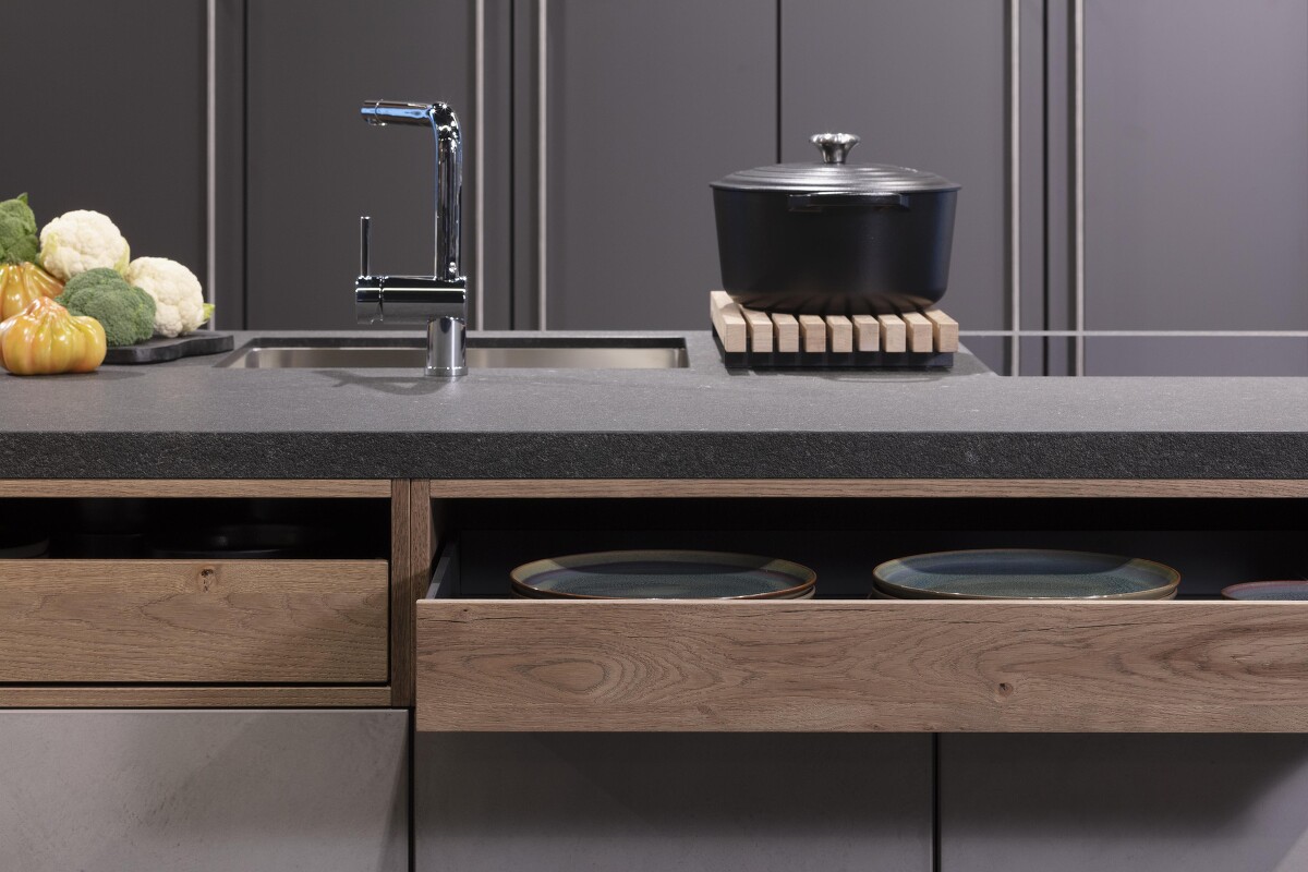 In der Küche bieten solche Auszugsregale hohen Bedienkomfort und natürlich auch einen gewissen Einblick in das, was sie beherbergen. Sämtliche Küchenschränke sollte man nicht damit ausstatten, dann wirkt die Küche schnell unruhig und möglicherweise auch unaufgeräumt. Am schönsten wirken Englische Züge als Duo oder Trio nebeneinander eingebaut, am besten noch mit kontrastierender Frontfarbe. So werden sie zu einer gelungenen Küchenzierde.